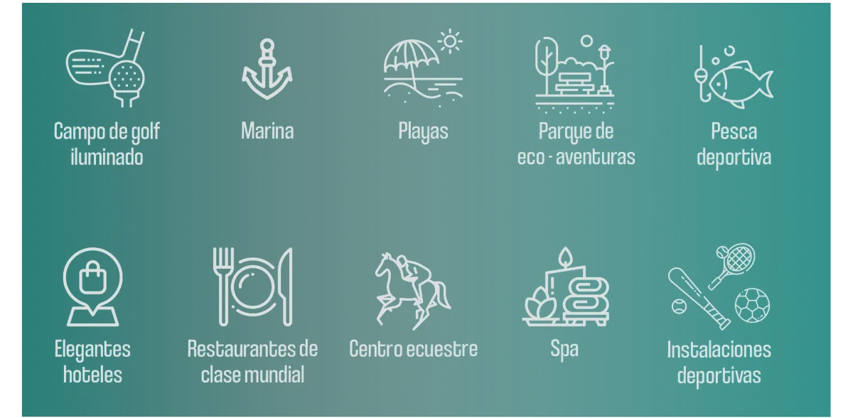 Rodeado por un entorno natural y cálidas aguas cristalinas, su plan maestro de 30,000 acres abarca un campo de golf galardonado, una espectacular marina famosa por su pesca deportiva, un centro ecuestre, un parque de eco-aventuras, spas, elegantes hoteles de renombre, variadas instalaciones deportivas y restaurantes de clase mundial.